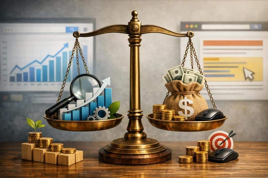Ich weiß noch genau, wie es sich anfühlte, als ich zum ersten Mal ein Marketingbudget aufteilen musste: viel Zahlenschieberei, viele Annahmen – und noch mehr Diskussionen. SEO oder PPC? Langfristige Sichtbarkeit oder sofort messbare Ergebnisse? In der Praxis ist das niemals schwarz-weiß, auch wenn es auf Slides oft so aussieht.