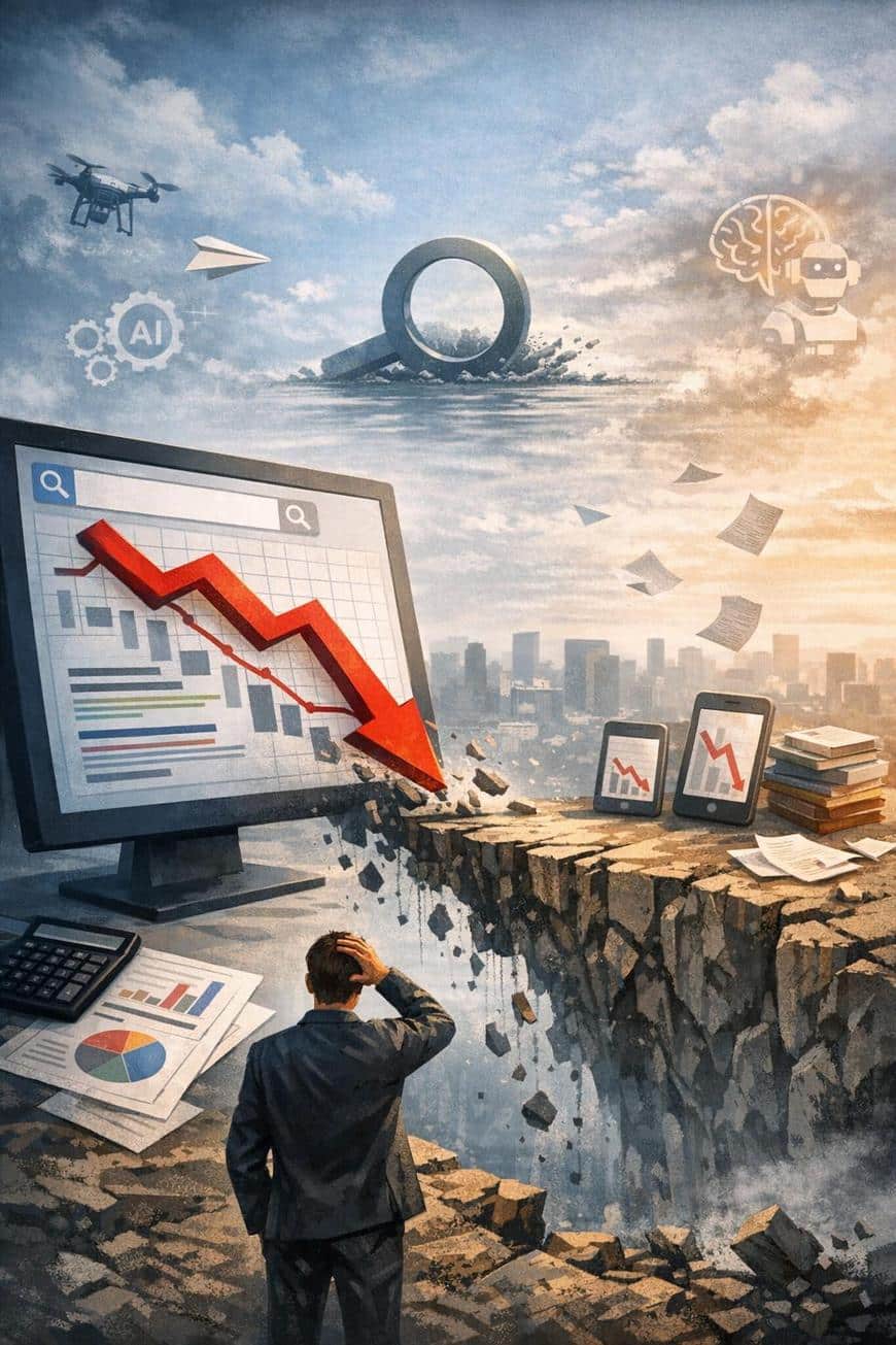 In den kommenden drei Jahren, so schätzen 280 befragte Führungskräfte aus 51 Ländern, wird der klassische Suchverkehr um gut 40 Prozent einbrechen. Diese Zahl ist keine kleine Schwankung, sondern eine tektonische Verschiebung. Du kannst dir das vorstellen wie eine Stadt, die ihr wichtigstes Zubringersystem verliert: plötzlich weniger Besucher, sinkende Umsätze, und die Frage, wie man den Anschluss wiederfindet.